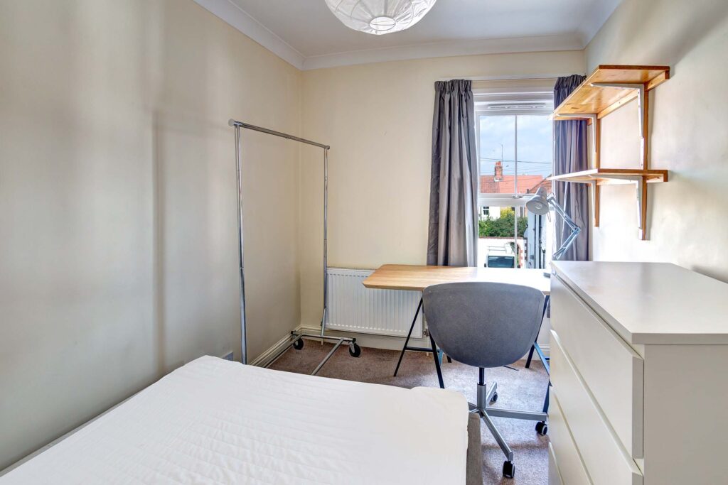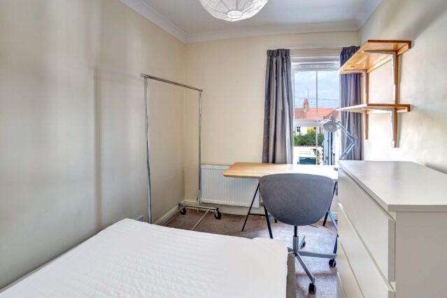 Portersfield is a recently renovated property offering four double bedrooms. Each room comes fully furnished with a double bed, desk, chair, clothes rail, and chest of drawers. The house boasts both a lounge and a dining room that adjoins a modern galley kitchen, and modern bathroom. The kitchen is fully furnished and comes with plenty of cabinet and worktop space. There is a small gravel garden with picnic bench at the rear of the property which provides a private place to socialise. There is also side passage access.