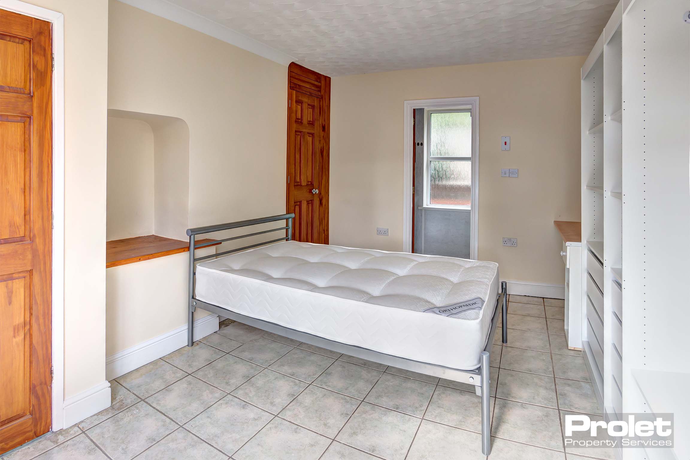 The downstairs of the property offers hallway entrance, front double bedroom (with ensuite), kitchen-diner and rear entrance in the large garden. The kitchen is fully fitted with double oven with hob, fridge-freezer, washing machine and plenty of cupboard storage and worktop space. The upstairs of the property offers the remaining three bedrooms, a modern family shower-room and separate toilet. Each of the four bedrooms are fully furnished with, a double bed, desk, chair and built in wardrobe storage.